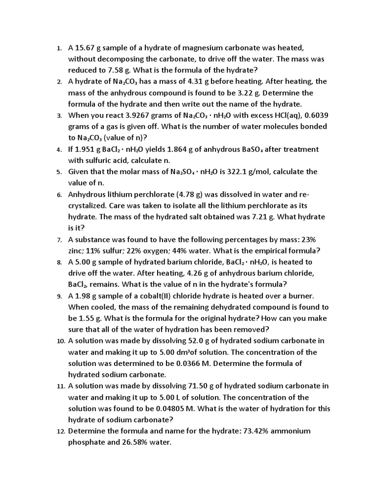10 11 Percent Of Water In A Hydrate Chemistry Libretexts